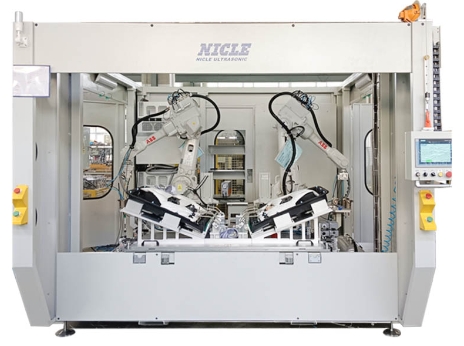 柔性机器人超声波焊接机:开启焊接新时代!在实际应用中,柔性机器人超声波焊接机已经在多个行业展现出了强大的实力。在电子行业,随着电子产品的小型化和智能化,对零部件的焊接精度提出了更高的要求。柔性机器人超声波焊接机能够实现微米级别的精准焊接,确保了电子元件之间的可靠连接,提升了电子产品的性能和稳定性。 结构介绍: 1、机器人本体(品牌可选:ABB、安川、发那科等),一般是伺服电机驱动的6轴关节式操作机,它由驱动器、传动机构、机械手臂、关节以及内部传感器等组成。它的任务是精确地保证机械手末端(超声波焊头)所要求的位置、姿态和运动轨迹; 2、机器人控制柜,它是机器人系统的神经中枢,包括计算机硬件、软件还有一些专用电路,负责处理机器人工作过程中的全部信息和控制它的全部动作; 3、超声波焊接电源系统,包括超声波焊接电源、专用焊枪等; 4、超声波焊接传感器及系统安全保护设施; 5、超声波焊接工装夹具。 汽车制造业是柔性机器人超声波焊接机的重要应用领域。汽车零部件的生产需要大量的焊接工作,而且对焊接质量和效率要求极高。传统的焊接方式不仅效率低下,而且难以保证焊接质量的一致性。柔性机器人超声波焊接机的应用,彻底改变了这一局面。它可以根据不同零部件的形状和焊接要求,快速调整焊接参数和路径,实现自动化、高效化的焊接生产。比如在汽车内饰件、保险杠、门板等塑料部件的焊接中,它能够快速、精准地完成焊接任务,大大提高了生产效率,同时保证了焊接强度和外观质量。 除了电子和汽车行业,在医疗器械、包装、航空航天等行业,柔性机器人超声波焊接机也发挥着重要作用。在医疗器械领域,它可以用于焊接各种精密的医疗设备零部件,确保设备的安全性和可靠性;在包装行业,能够实现塑料包装的快速封口,提高包装效率和质量;在航空航天领域,对于一些高精度、高强度要求的零部件焊接,它也能提供可靠的解决方案。 不难预见,随着人工智能、大数据、物联网等技术的不断发展,柔性机器人超声波焊接机还将不断进化。它将具备更强大的智能感知和决策能力,能够实时监测焊接过程中的各种参数,并根据实际情况自动调整焊接工艺,进一步提高焊接质量的稳定性和可靠性。此外,设备的通用性和兼容性也将不断提升,能够更好地适应不同行业、不同产品的生产需求。